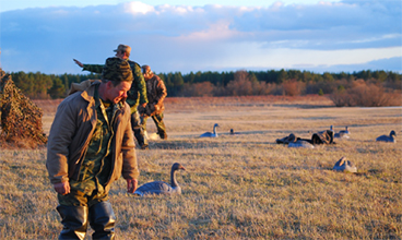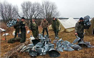 К весенней охоте мы готовились заранее. Осмотрели и подкрасили чучела, приобрели дополнительно пять новых. Проверили состояние всех наших манков, ведь даже «ежикам понятно», что на гусей без манка охотники не ходят. Заметим, духовые манки имелись только у трех наших охотников, у тех, кто одарен музыкальным слухом. За два дня до открытия весенней охоты мы уладили и преодолели все препятствия и отправились в дальние края на гусиную охоту.