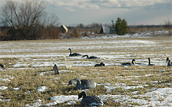 Довольно быстро расставили чучела. Очень хотелось поскорее попробовать свои манки непосредственно на гусиных стаях и посмотреть, как живые гуси будут реагировать на «голос» манка. Ведь даже «умеющий манить» охотник за зиму часто теряет свои навыки. Электронный имитатор помогает охотнику быстро восстановить способность манить правильным голосом. Электронный имитатор служит «учителем», образцом для подражания. Перед каждой охотой можно восстанавливать свое умение манить зверей и птиц. Ну, а кроме охоты существует, например, фотоохота. Электронный манок помогает фотохудожникам делать яркие снимки живой природы. Орнитологам такие приборы помогают в кольцевании птиц. Манков в продаже имеется множество. Разобраться, какой из них лучше, сложно, особенно начинающему охотнику. Я, например, остановился на общеизвестном электронном манке «Беркут» ООО НПО «Сфера» модели «Беркут PROFIHUNT».
