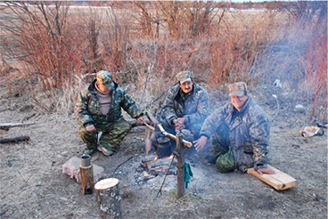 Из общего шалаша стреляем по команде старшего, нарушителей сразу изгоняют вон.