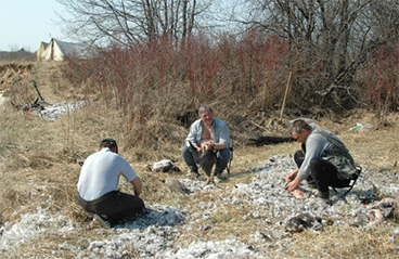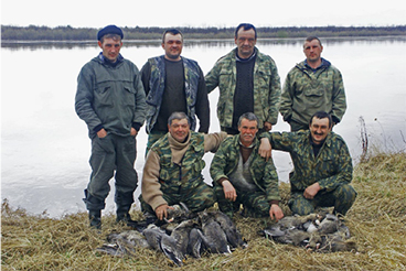 К обеду, как правило, становилось тепло, особенно на солнце. Садимся щипать добытых гусей, дело это не простое, но приятное. Ощипанных и опаленных газовой горелкой гусей складываем в специально вырытую яму со снегом и льдом. Яму укрываем пленкой и засыпаем землей, чтобы сохранить добычу.